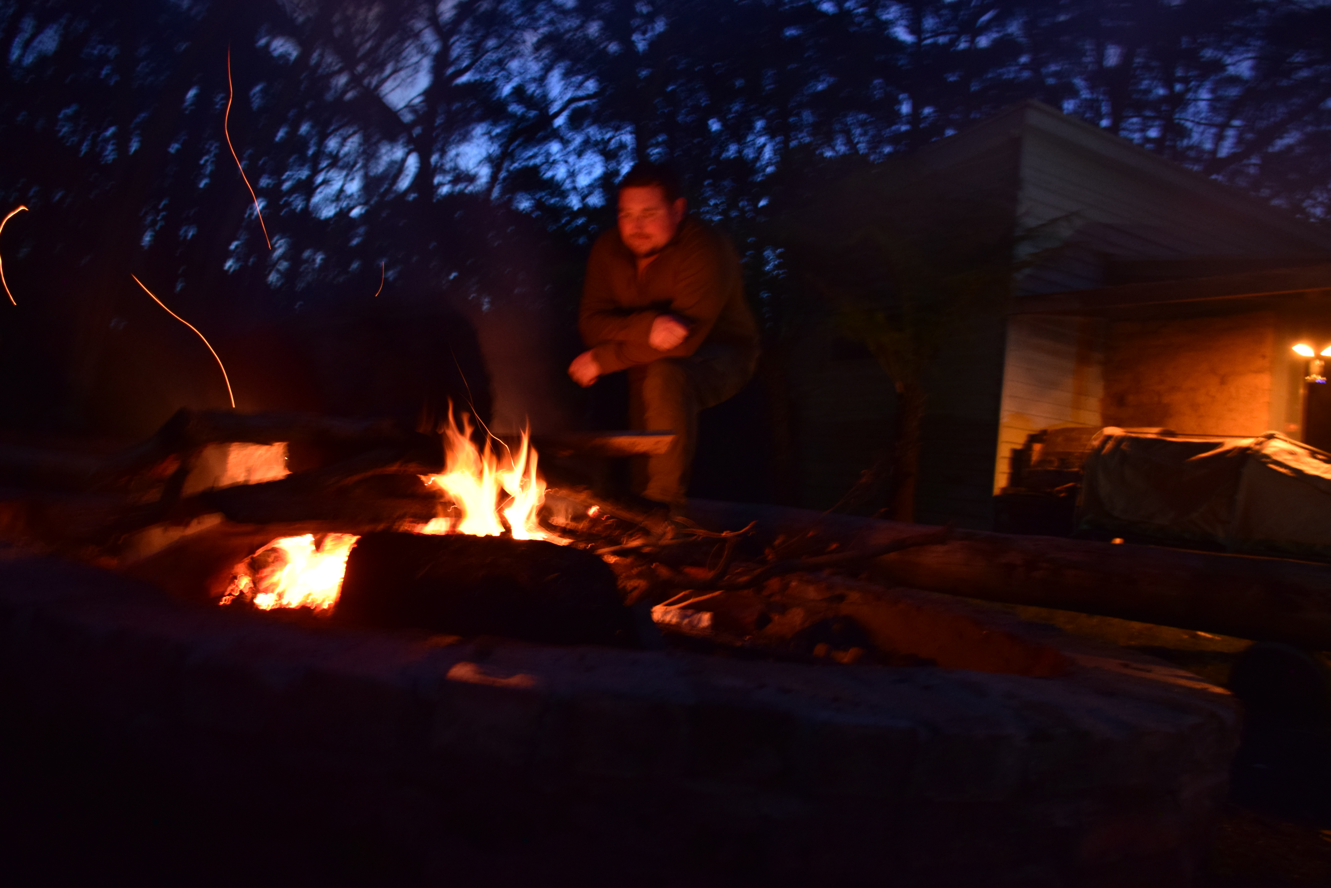 The large outdoor fire pit, surrounded by bench seating, is perfect for roasting marshmallows or cooking whatever you like.